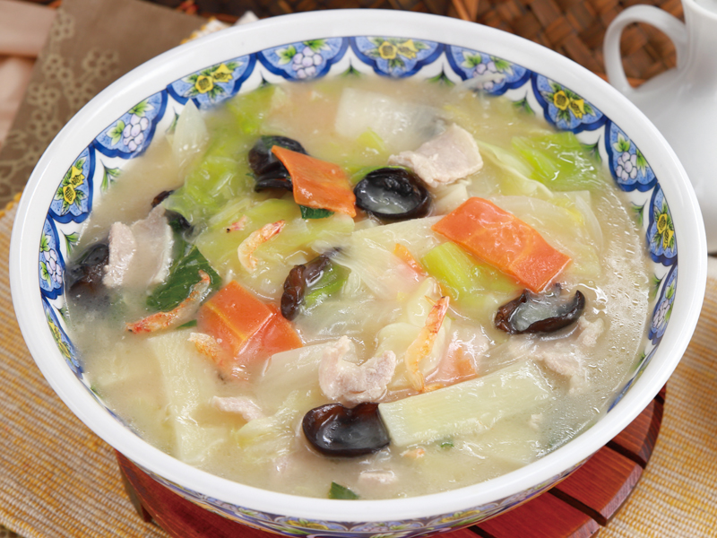 - 主な材料豚肉・桜海老・竹の子・白菜・人参・キャベツ・木耳・玉葱・チンゲン菜