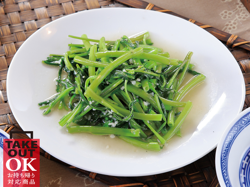 日本ではあまりなじみの少ない野菜ですが、芯の部分が空洞になっており、この為中国語で空芯菜と呼ばれています。蒜の香りと塩のバランスと空芯菜のシャキシャキ感を楽しんでいただける料理となっています。