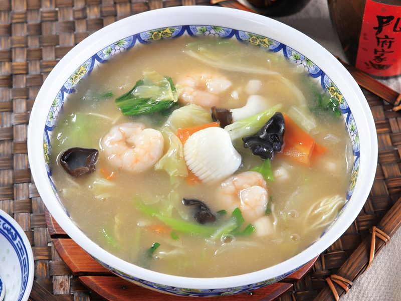 - 主な材料エビ・イカ・貝柱・白菜・玉葱・人参・チンゲン菜・キャベツ・木耳